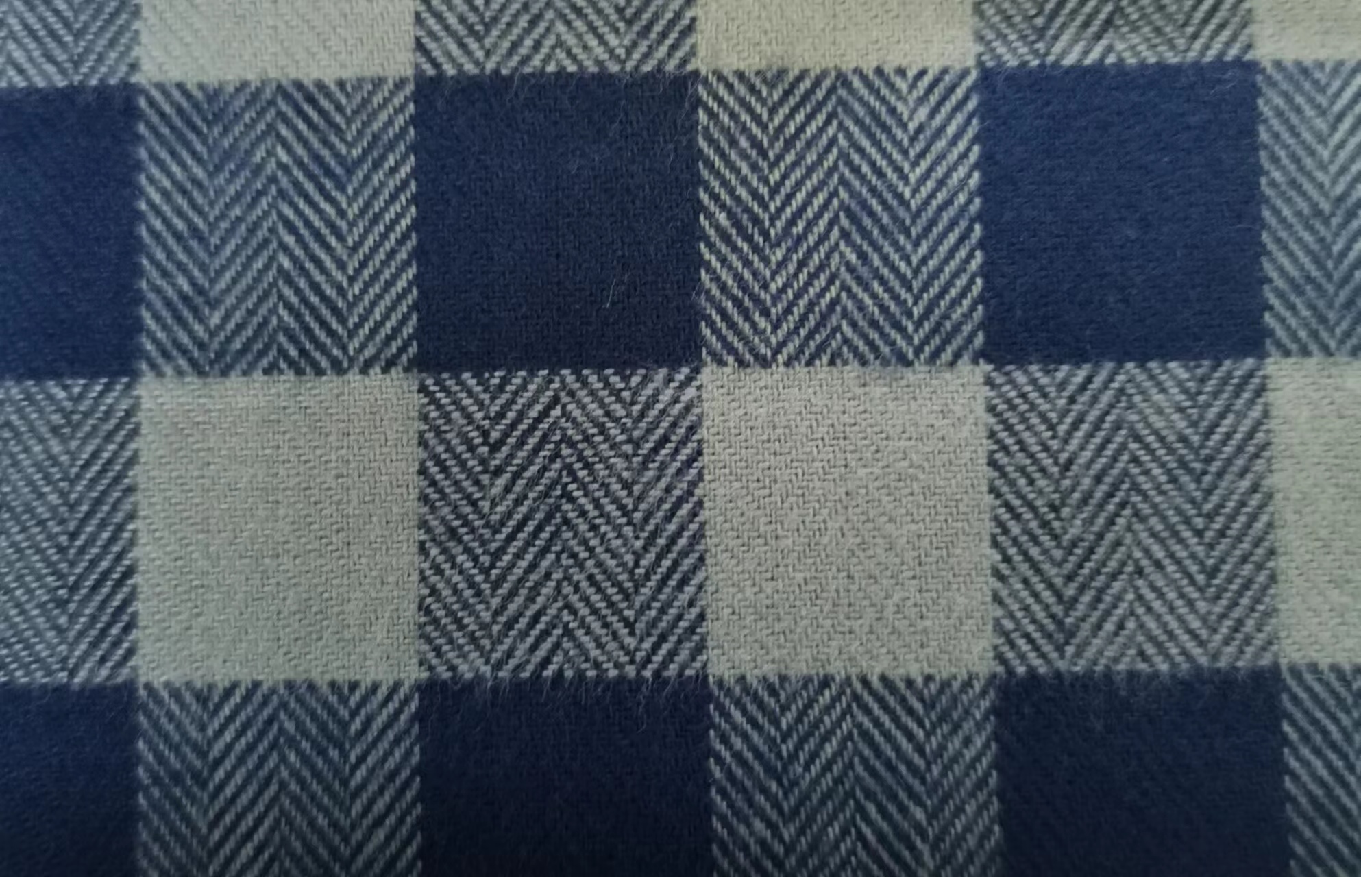 面料宽度:142 整理方式:双面磨毛 面料颜色:灰蓝格 面料色线:格子 经向缩水率:0 纬向缩水率:0 胶:0 胶宽:0 朴:0 朴宽:0